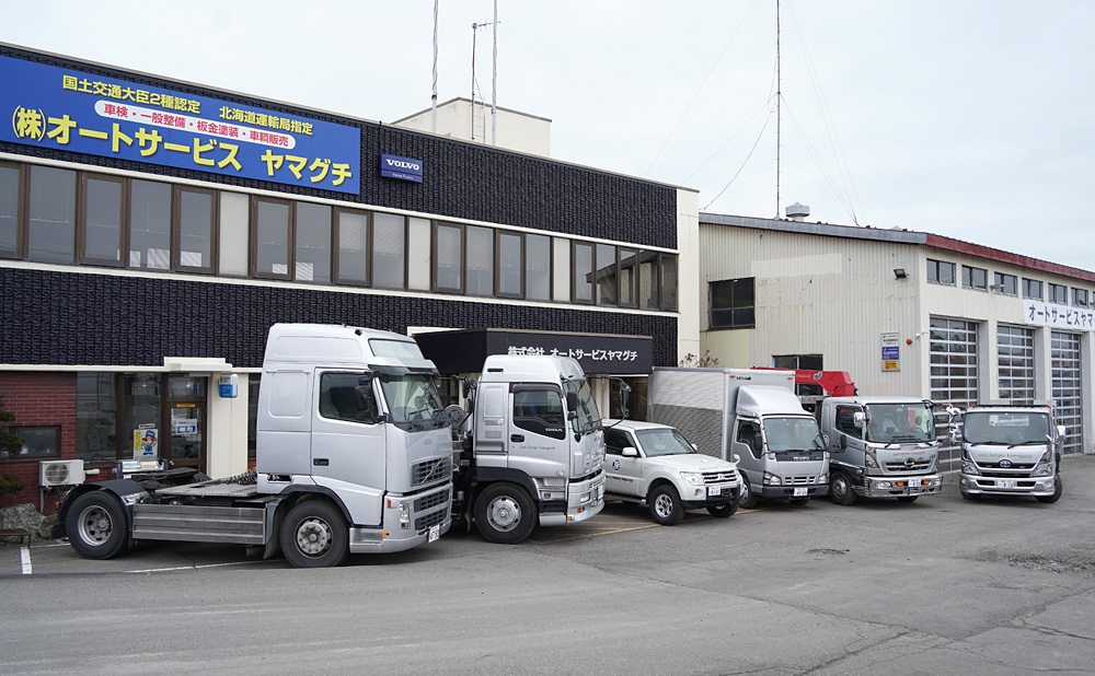 オートサービスヤマグチは、ボルボ・トラックなど運送車両の販売・整備や業務用カスタマイズ、一般向け車両の取り扱いをおこなっている自動車修理・整備工場です。
