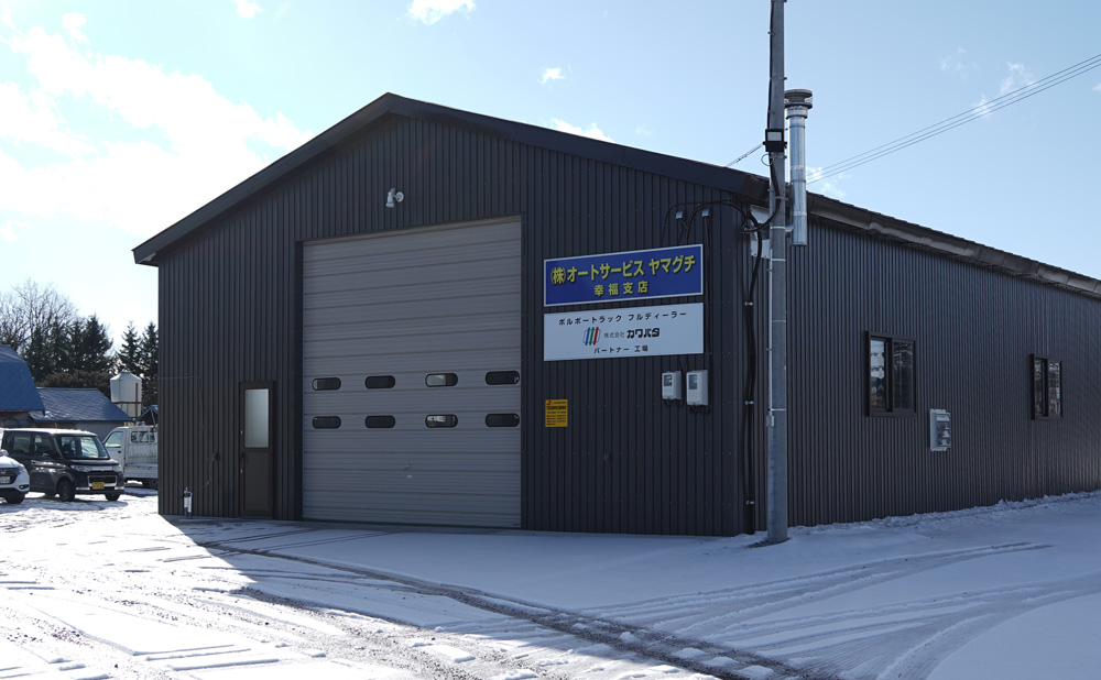 ●本社工場 (国土交通大臣2種認定 北海道運輸局指定 レッカーロードサービス) 089-2624 北海道広尾郡広尾町並木通東 3 丁目 34 番地 TEL:01558-2-2427 FAX:01558-2-3046 大型 4 レーン/小型 4 レーン/塗装 1 レーン/検査ライン完備 メール info@as-yamaguchi.com ●BPセンター (鈑金塗装フレーム修正機完備認定工場) 〒089-2627 北海道広尾郡広尾町丸山通北 1 丁目 27 番地 TEL:01558-8-9007 FAX:01558-8-9008 大型 1 レーン/小型 1 レーン/塗装 2 レーン/フレーム修正レーン ●幸福支店 〒089-1245 北海道帯広市泉町東 14 線 186 番地 9 TEL:0155-66-7460 FAX:0155-66-7461 大型 2 レーン ●豊似展示場 〒089-2446 北海道広尾郡広尾町紋別 18 線 50 ●名古屋支店 〒452-0844 愛知県名古屋市西区上橋町 237-1 K・Z ガーデンプレイス 1 階 TEL:052-990-4377 FAX:052-990-4378 ●茨城展示場 〒300-1154 茨城県稲敷郡阿見町大字上長宇屋敷 868 番 7 ●名古屋特装工場 〒452-0824 愛知県名古屋市西区こも原町220番地こも原町220倉庫 店舗・アクセス |